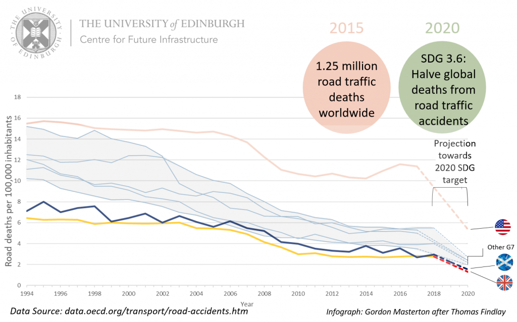 Transport Scotland’s 2016 Strategic Road Safety Plan maintains the less ambitious target set in 2009, with no acknowledgement yet of either the EU or the SDG Targets [6].
