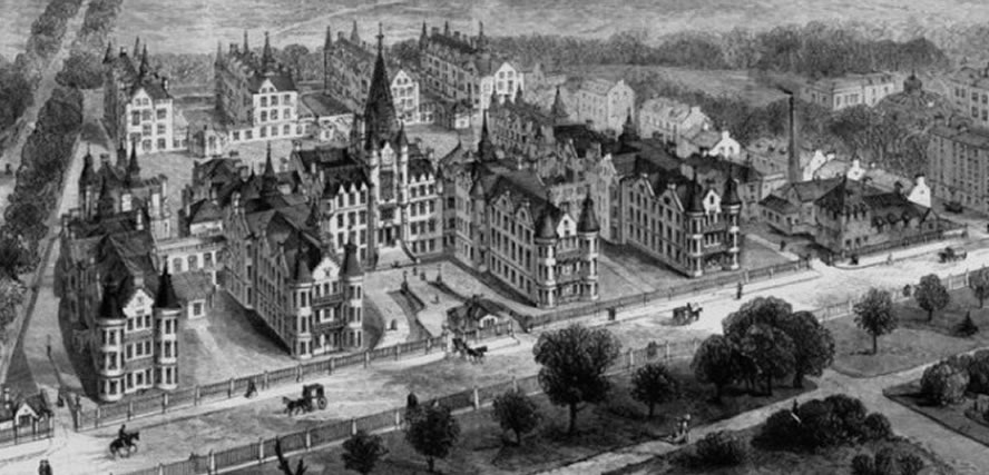 Architect David Bryce, famed for his Scots Baronial style seen in his work at the city’s Fettes College and the Bank of Scotland headquarters, was asked to design a new Royal Infirmary. His plans were greatly influenced by the ‘pavilion’ model developed by nursing pioneer, Florence Nightingale. Each ward was three stories tall with large windows. The rationale was that the increased space and light improved ventilation and reduced mortality rates.
